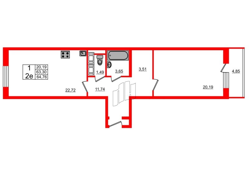 1-комнатная квартира в ЖК «Австрийский квартал» за 3 380 000 руб
