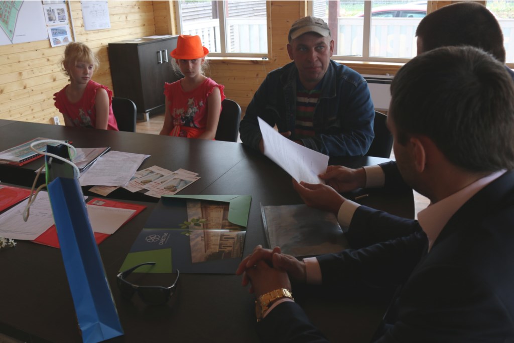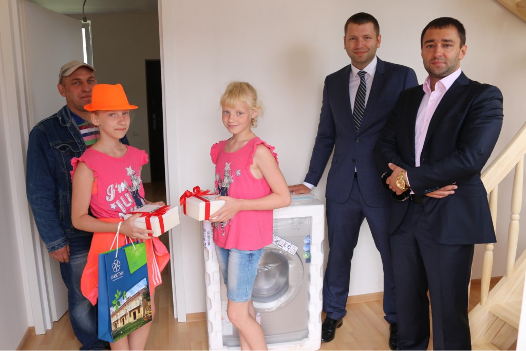 С одним из них мы встретились лично во время передачи ключей. Николай Дмитриевич Зуев — один из первых покупателей жилья в «Счастье». Вместе с семьей он планировал перебраться из квартиры в Никольском в свой двухэтажный дом. Для двух девочек, которых один воспитывает Николай Дмитриевич — это позволило бы им заниматься музыкой, не мешая соседям. «Места в Никольском для семьи не хватало. Две девочки занимаются музыкой, Настя играет на скрипке, а Галя на пианино. Детям нужно развитие», - говорит Николай Дмитриевич, примеряя место в гостиной на первом этаже под пианино: «Девочки должны заниматься минимум по 2 часа в день. Одна будет заниматься здесь, а на втором этаже, в своей комнате, сможет играть на скрипке вторая. К тому же здесь удобнее с транспортом, в школу в город добраться можно быстрее, чем из Никольского».