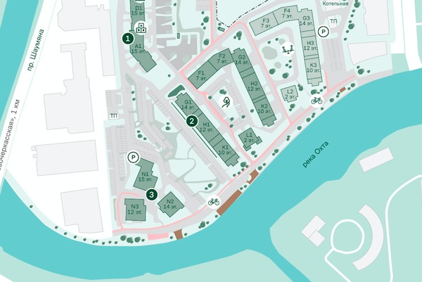3-я очередь не только расположена в отдалении от остальных очередей комплекса. Посмотрите на карту: как близка она к набережной. К европейской набережной, благоустройством которой мы сейчас занимаемся.