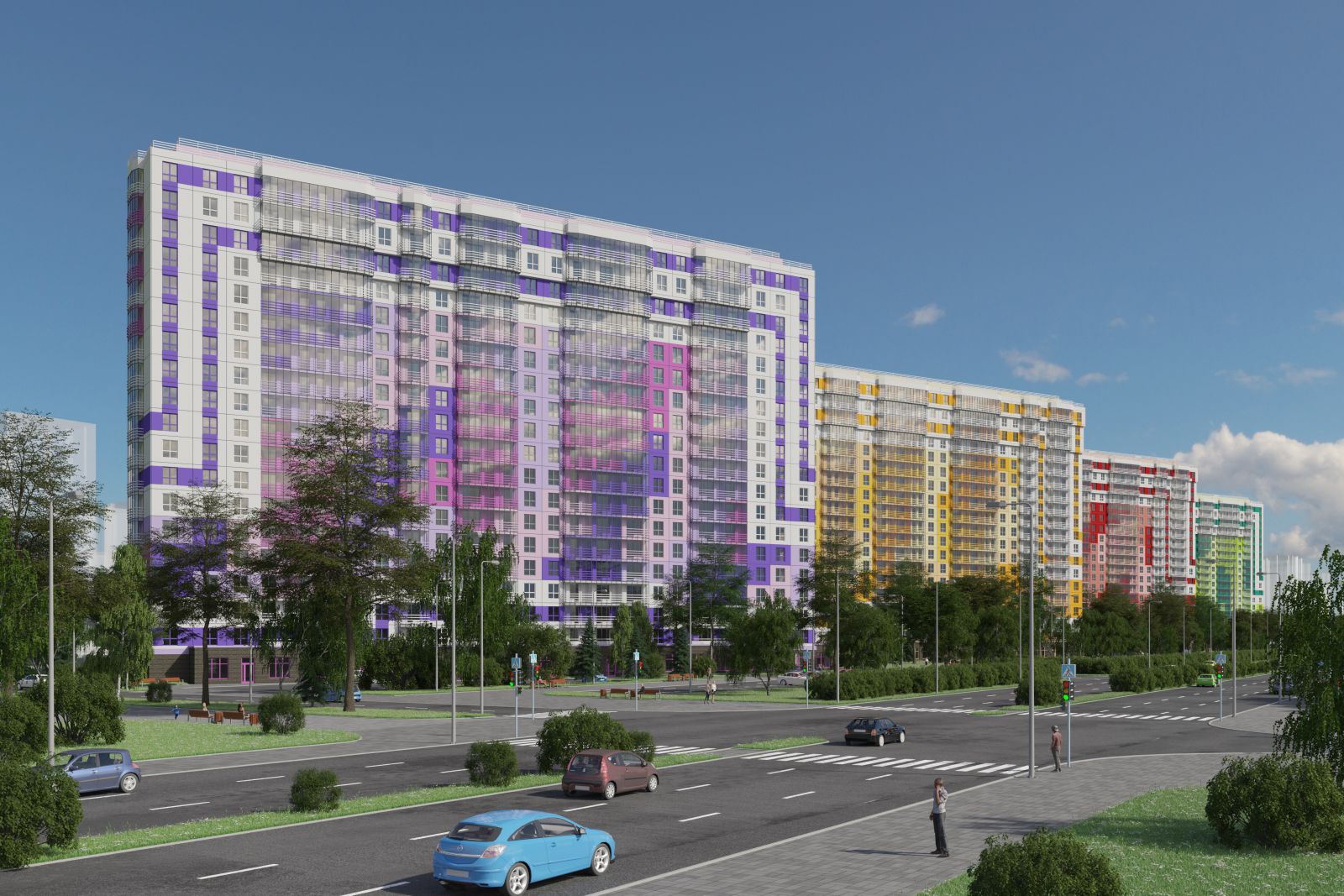 ЖК YOGA – это современный комплекс комфорт-класса, архитектурный ансамбль которого состоит из четырех отдельно стоящих 19-этажных домов, расположенных параллельно друг другу. Каждый дом выполнен в особой цветовой гамме, имеющей собственное символическое значение. Зеленый означает хорошую экологию и близость к природе. Красный – энергию и активный образ жизни. Желтый – солнечное настроение и радость. Фиолетовый – спокойствие, созерцание и гармонию. А все вместе они создают неповторимый «характер» жилого комплекса, отражая его название и концепцию.