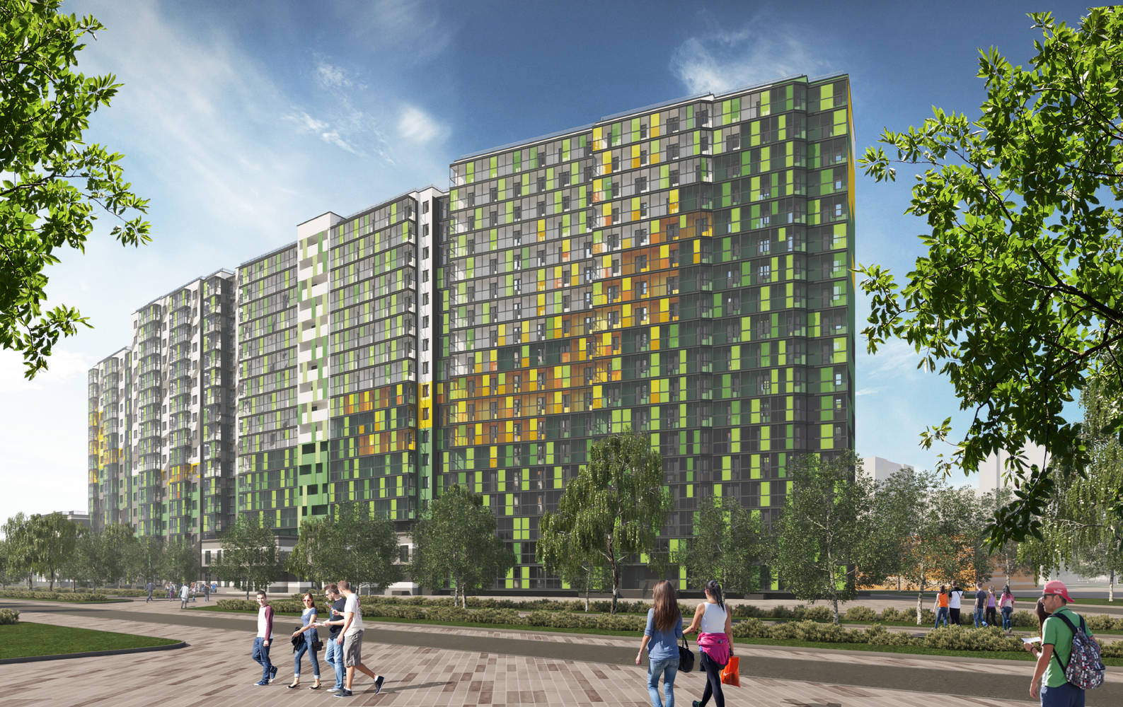 Над проектом фасадов работали специалисты финского архитектурного бюро Юкки Тикканена. Закрытая территория двора будет оборудована зонами отдыха, детскими и спортивными площадками для разных возрастных групп, по периметру установлена система видеонаблюдения. Для придомовой территории разработан эксклюзивный ландшафтный дизайн с использованием цветущих многолетних растений.