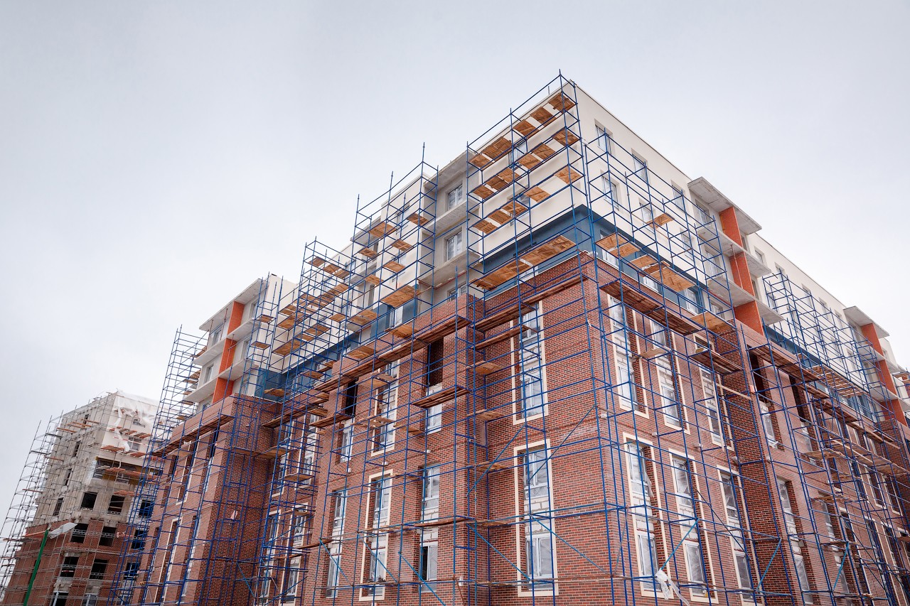 В 34 корпусе жилого комплекса «Английская миля» продолжается отделка фасадов. Строители приступили к монтажу декоративных оконных рам.