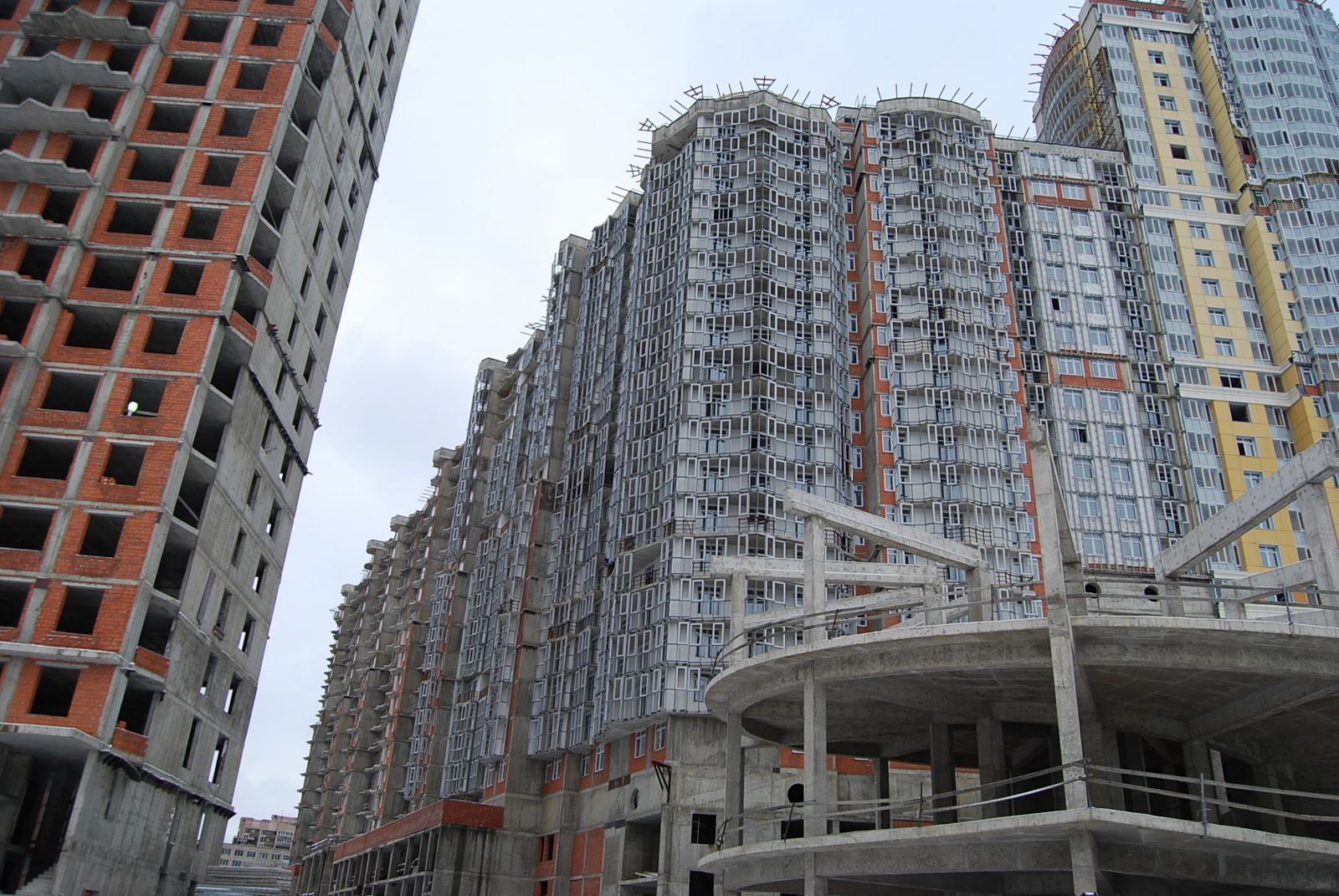 В корпусе 1–1 заканчивается заливка стяжек полов на последнем этаже, а в корпусе 1–2 данные работы выполнены с 5 по 24 этаж.